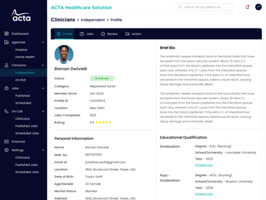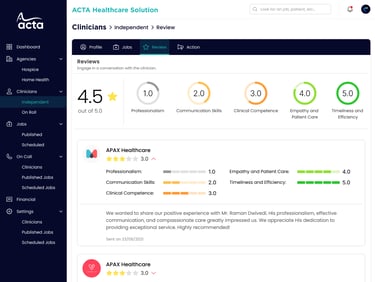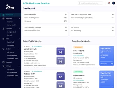 A comprehensive healthcare staffing and management platform used to manage agencies, clinicians, job assignments, payments, and performance tracking.